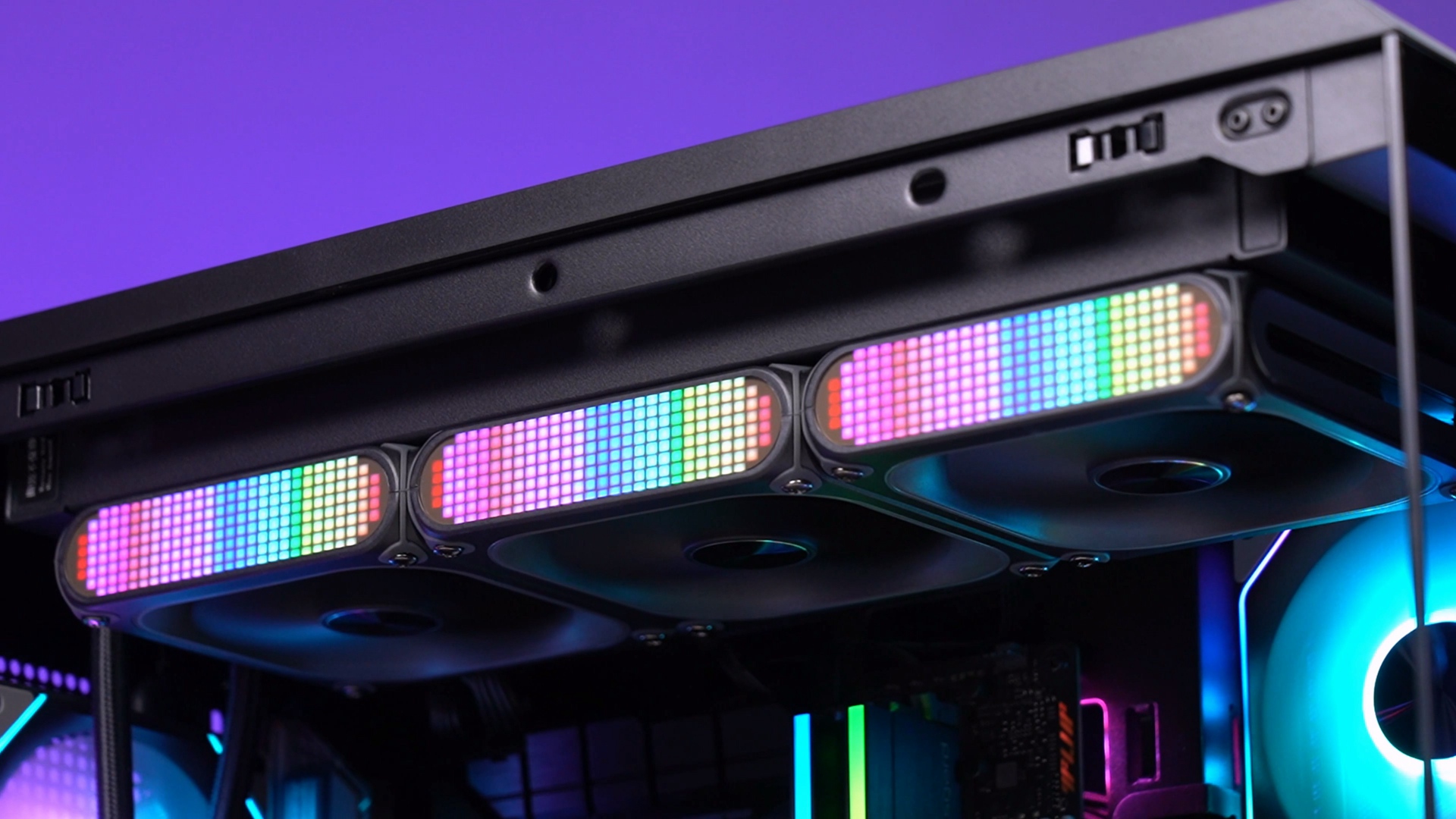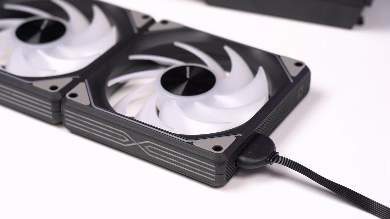 而新上市的星璨岚月磁吸风扇也别具一格,风扇之间通过磁吸式拼接,拆装便捷省事,其供电线材为三合一供电形式,仅需一根线就能解决一组风扇的供电和灯光调节问题,使装机更加整洁美观。