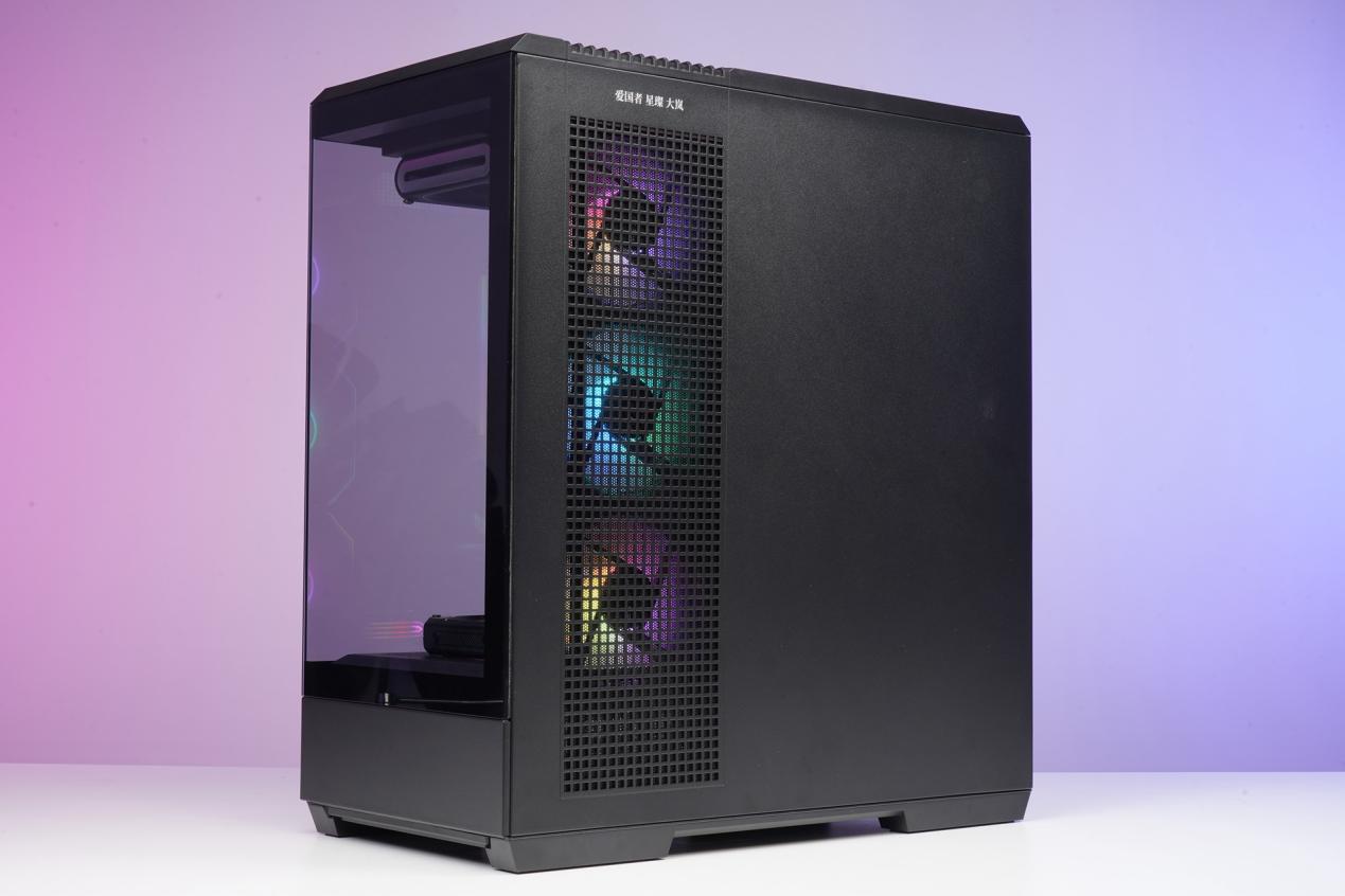 首先从机箱的外观设计来看,爱国者星璨大岚使用的还是270°无立柱的设计,颜色方面有黑白两种可选,它的正面和侧面均为全透钢化玻璃