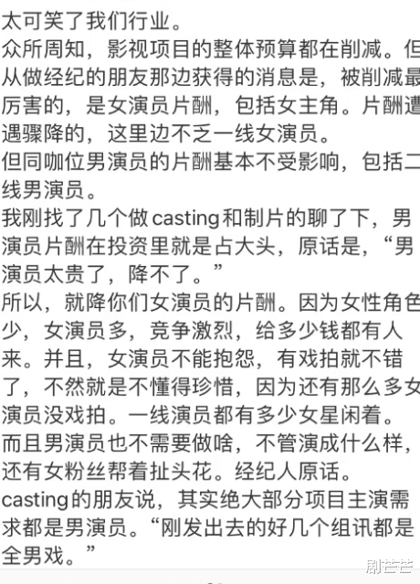 之前,就有爆料,影视寒冬,先削女演员,项目减少,降低片酬,全部要求男戏。