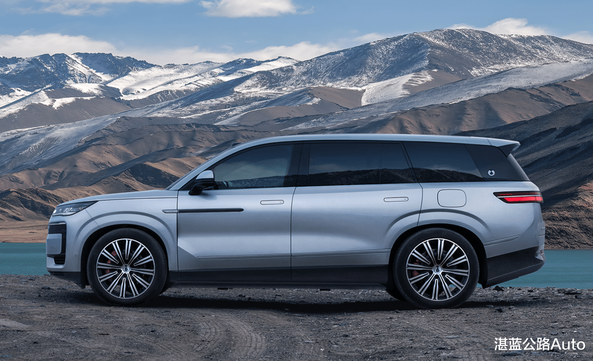 车身侧面,接近5米3的修长车身,搭配大尺寸轮毂,进一步增强了运动感。其轮毂样式个性,与车身相得益彰。新车还采用了无侧水切和纯平玻璃,B/C 柱与车窗形成一个水平面,不仅提升了整车的质感,还让侧面线条看起来更加简洁流畅。车门上的隐藏式门把手,在不使用时与车身融为一体,既美观又能降低风阻。电动侧踏(需要选配)的配备十分贴心,让上下车变得更加方便且优雅。前门板凹陷与前翼子板的夹角位置还设置了侧后向摄像头,平日里多数角度平视都难以察觉其存在,巧妙地融入了车身设计之中。