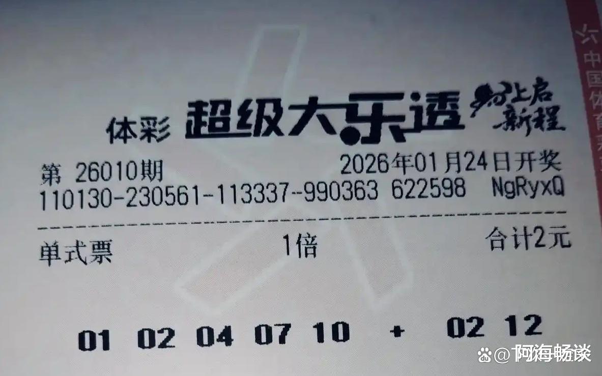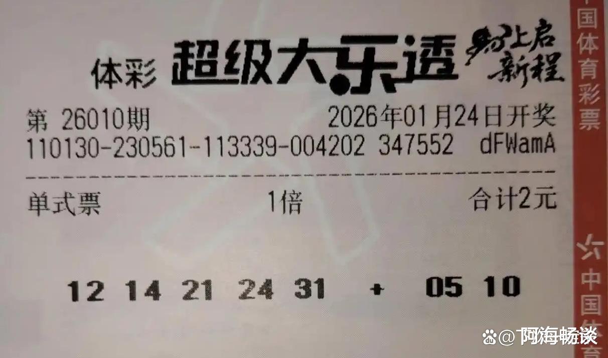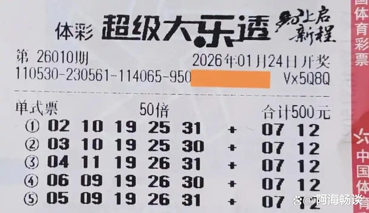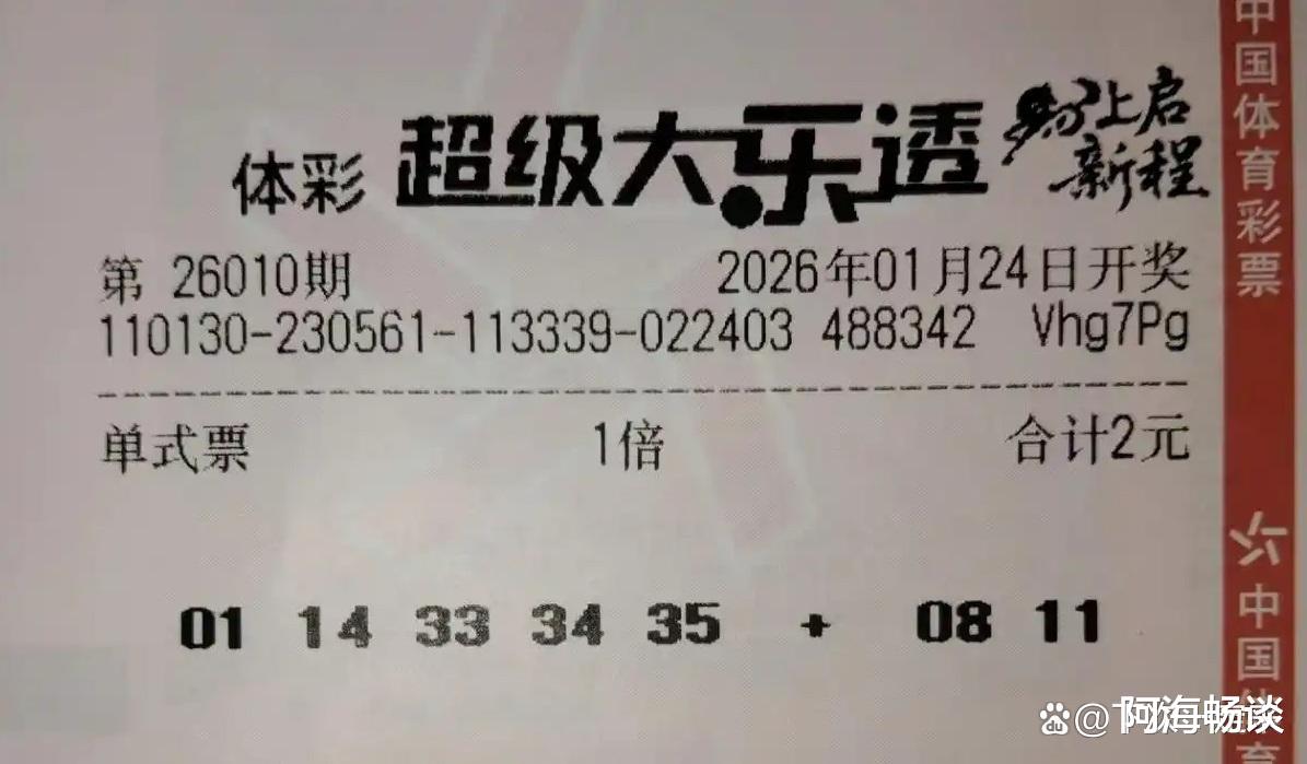 大家好!今天是2026年1月23日,星期五。大乐透第26010期将于明晚开奖,上期奖池达7.34亿元。上期全国开出5注头奖,单注收获733万元。新一轮角逐即将开始,已有不少票面亮相,接下来就与大家一起欣赏本期的晒票。