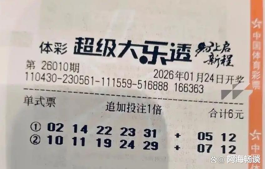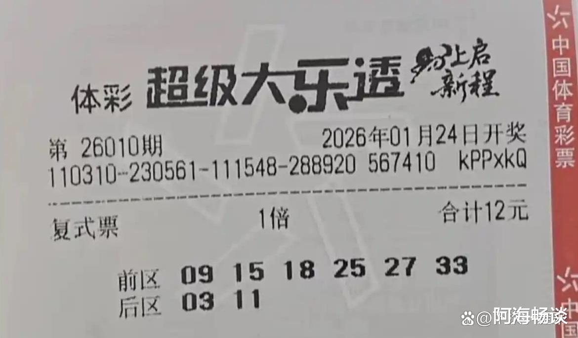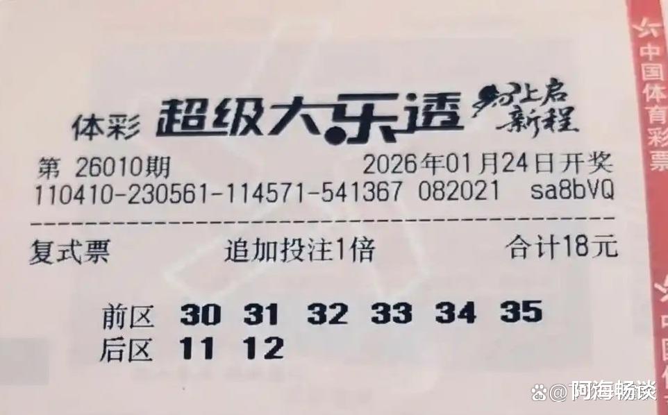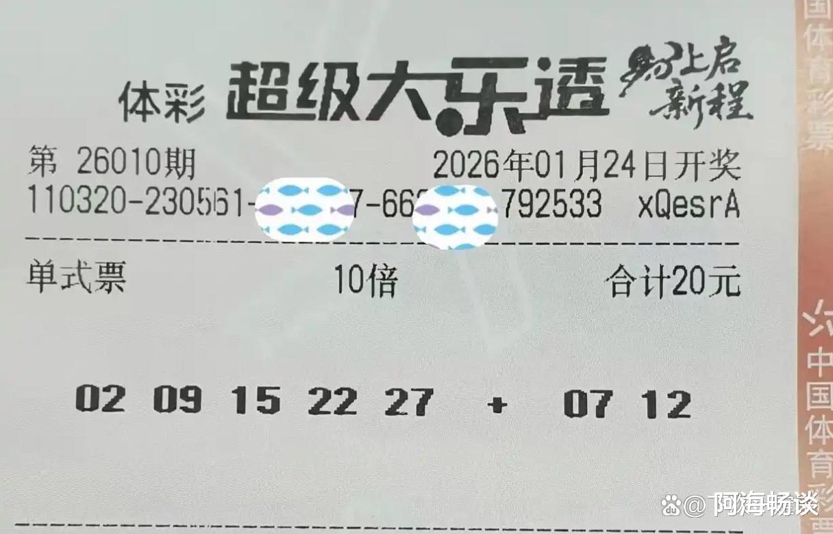 大家好!今天是2026年1月23日,星期五。大乐透第26010期将于明晚开奖,上期奖池达7.34亿元。上期全国开出5注头奖,单注收获733万元。新一轮角逐即将开始,已有不少票面亮相,接下来就与大家一起欣赏本期的晒票。