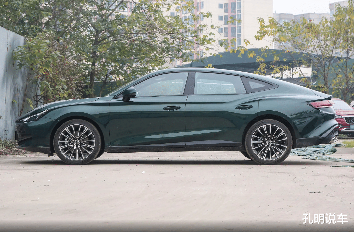 车身侧面看运动轿跑姿态很流畅,再加上无框玻璃配置,确实有种类似奥迪RS7的西装暴徒感觉,而且尾部有贯穿式灯光搭配隐藏折叠尾翼,再加上原厂改装风格的大口径排气,开这台车在路上回头率是比较高的。