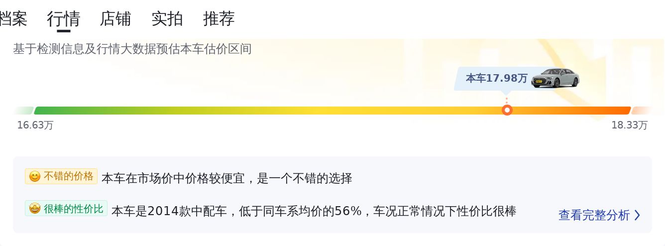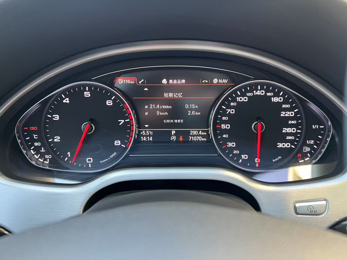 先介绍一下这辆二手车的基本情况,该车的具体版本是:奥迪A8 2014款 A8L 45 TFSI quattro舒适型,表现里程7.1万公里,2014年12月上牌,天津牌照,新车指导价92.68万,二手车报价17.98万,过户次数1次。车身颜色为黑色,内饰颜色为浅色。