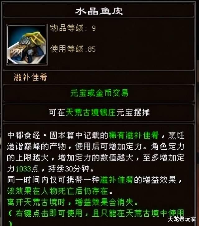 9级稀有烹饪——虽然挂了稀有两个字,但是在做高级烹饪时能有20%的几率能出水晶鱼皮,而且材料也很便宜。