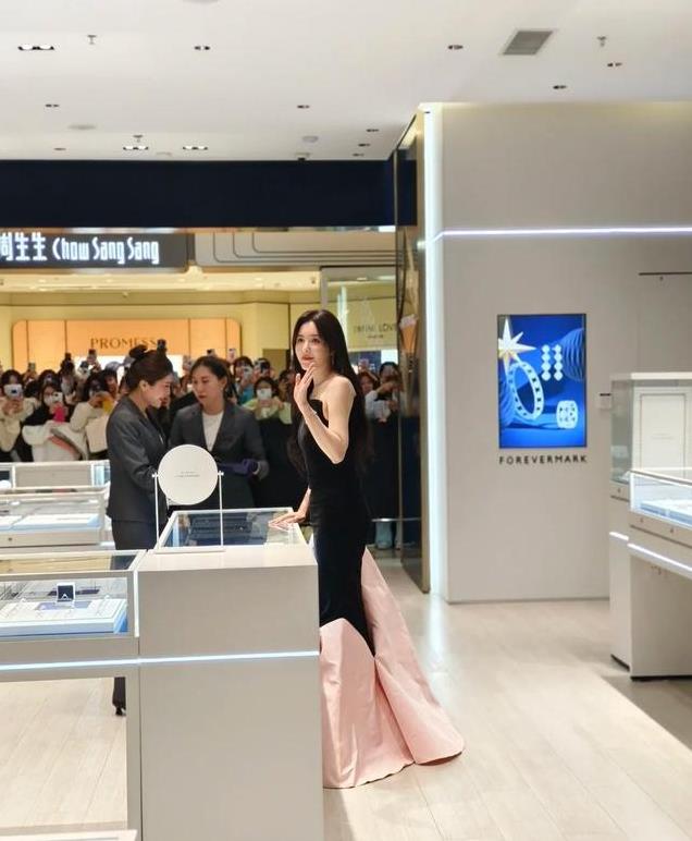 活动现场,曾黎穿上一身黑粉色的拼接长裙,瞬间气质大变,仪态万千,像个温雅贵妃一般惊艳众人。