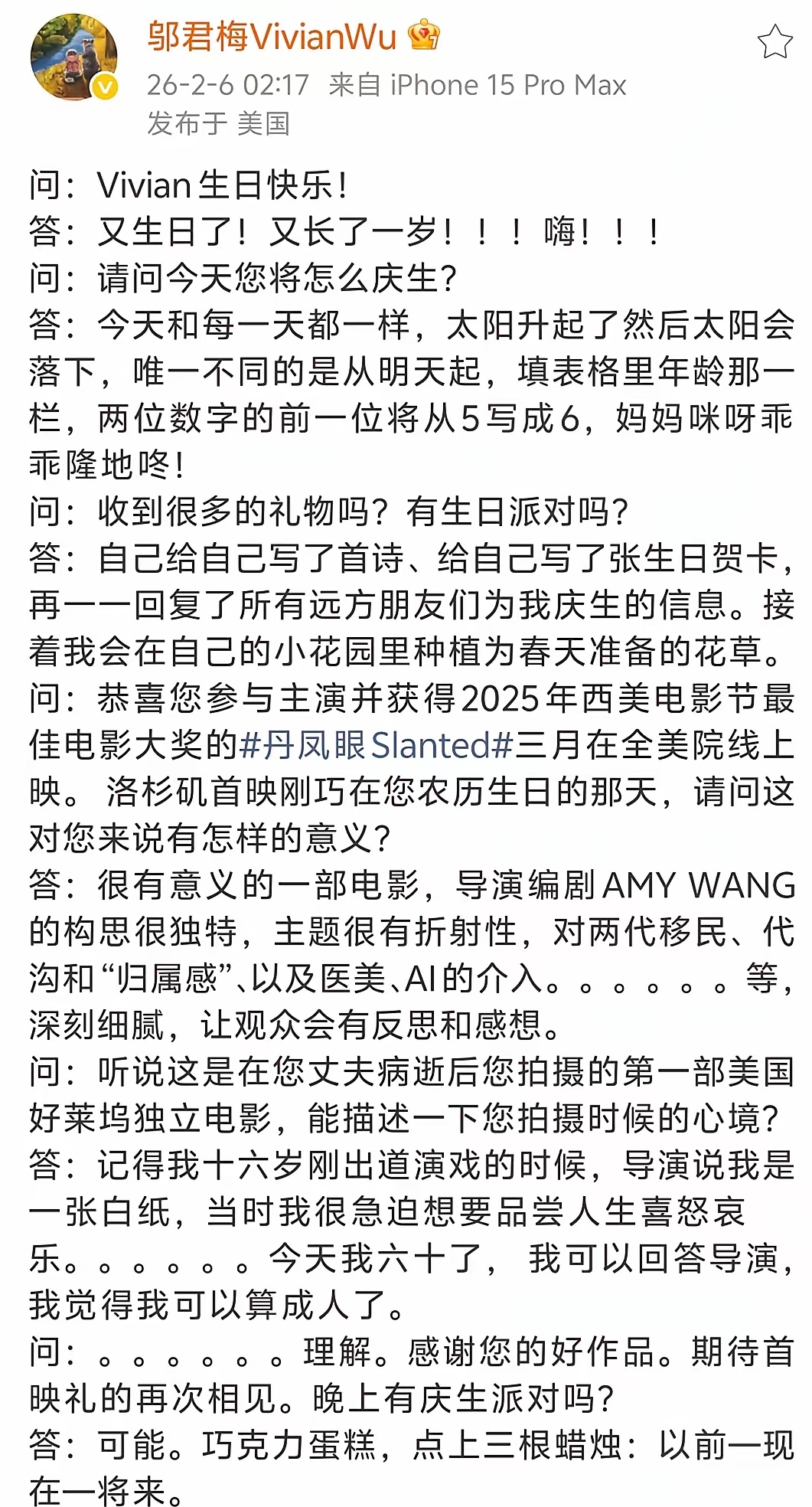 但鲜少关注她的私生活,直到近日她发文谈自己六十岁生日感想才恍惚时间过得好快。