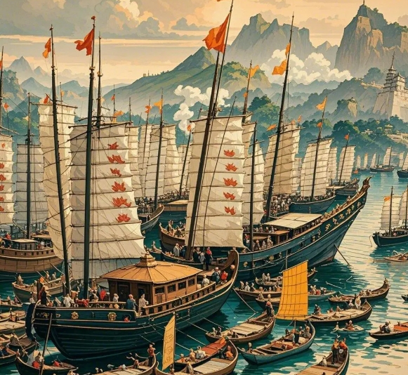 永乐十四年(1416 年)的春天,郑和舰队的主舰 "宝船号" 正经历着赤道阳光的炙烤。28 岁的福建船匠陈阿福蹲在甲板上,用刻刀在新烧制的青花瓷罐底部留下自己的名字 —— 他不知道,这个带着吴地口音的名字,会在六百年后成为中非远洋交流的铁证。当舰队从马林迪港(今肯尼亚马林迪)起锚时,12 面缀着金线的十二幅硬帆在海风中猎猎作响,这种源自泉州的先进风帆技术,让排水量千吨的宝船在逆风中仍能保持 6 节航速,比欧洲同期帆船快了近一倍。