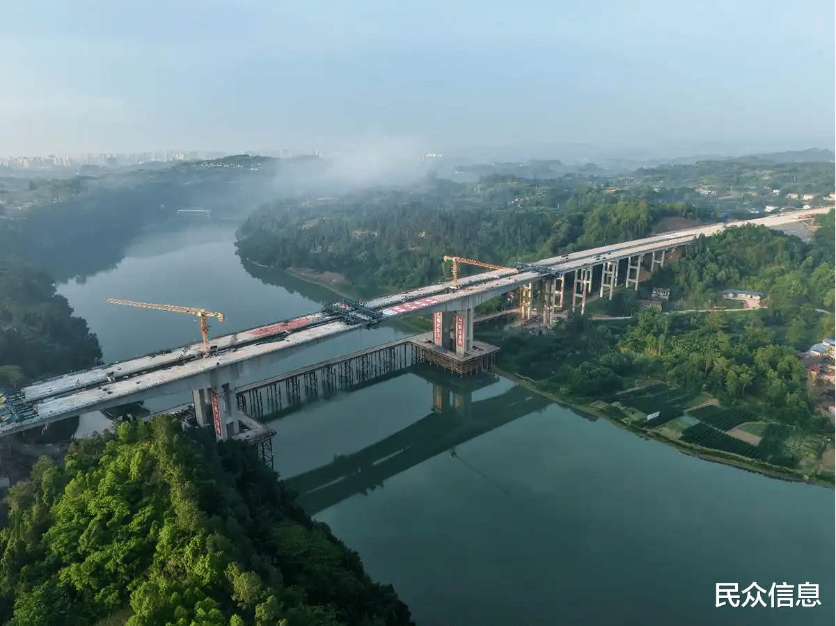 进入2025年,资铜高速项目建设进入关键和收官阶段:5月25日,由蜀道高速集团主导投资、四川路桥集团建设的铜资高速公路控制性工程——杨柳滩沱江特大桥主桥顺利合龙,为2025年底铜资高速全线通车奠定了坚实基础。杨柳滩沱江特大桥主跨376米,横跨沱江二级水源保护区,宛如一条巨龙卧于江面,大桥主墩最高达58.1米,相当于20层楼高。