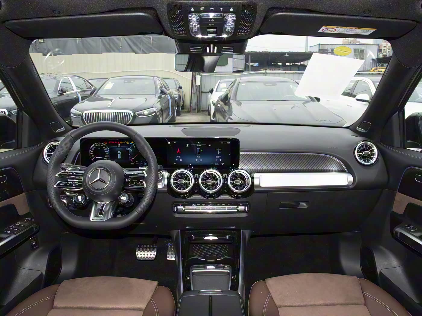 进入车内,GLB AMG 的内饰延续了奔驰家族的豪华质感,同时融入大量 AMG 运动元素。Nappa 皮饰包裹的 AMG 高性能方向盘采用扁平设计,抓握区域带有打孔处理,触感细腻且防滑,方向盘底部的 AMG 标识和两侧的换挡拨片,时刻激发驾驶欲望。双 10.25 英寸高清双联屏是内饰的核心,左侧仪表盘支持三种显示风格,右侧中控屏搭载 MBUX 智能人机交互系统,支持语音、触控、触摸板等四种操作方式,一句 “你好,奔驰” 即可唤醒导航、娱乐等功能,实用性极强。另外,新款AMG GLB 35 4MATIC默认采用5座布局,支持选装第三排座椅(选装价1万元),形成2+3+2式七座布局。