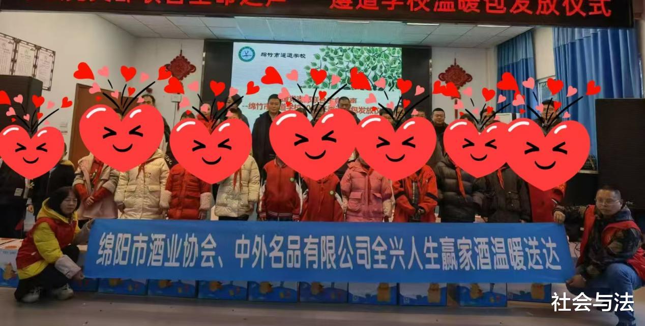 绵阳市酒业协会联合中外名品有限公司、全兴人生赢家酒团队赴绵竹遵道学校为困难儿童发放温暖包