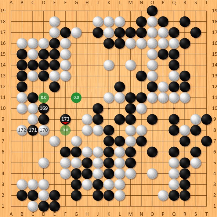陈梓健与一力辽的厮杀中,一力辽执黑,陈梓健手握白棋。实战中,双方在前半盘始终处于拉锯战当中。白棋的陈梓健在中后盘抓住一力辽的失误才逐渐确定了局面优势,并最终以1.75子的优势胜出。