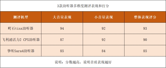 测评方法:测评时,我将通过播放一段动态范围较大的音频(现场音乐会),然后评估三款助听器对大音量和小音量细节的还原能力。重点观察各款助听器在音频中高低音的表现,并对各维度进行评分。