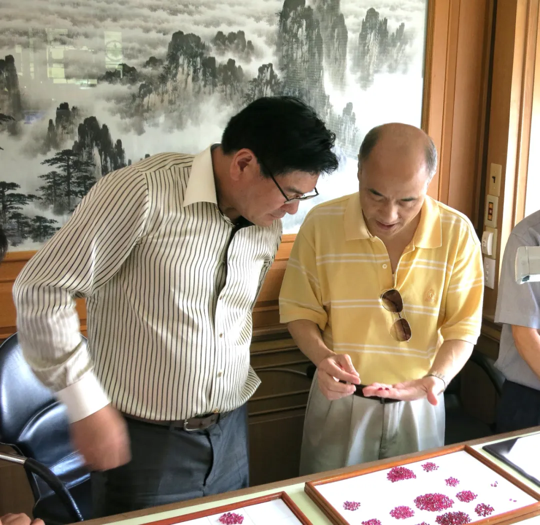 随后,他们回到阿宏的办公室,一边品茶闲谈,一边等候卖家送货上门。这里卖家往来不绝,红宝石始终是市场的核心宠儿 —— 尖竹汶承载着全球 70% 以上的红宝石交易量,其中 90% 的 3 克拉以下红宝石源自缅甸孟速(Mong Hsu)矿区,在此完成加热处理、切磨加工与销售。除此之外,当地的其他彩色宝石也极具市场竞争力,璀璨的宝石与多变的报价让人目不暇接。