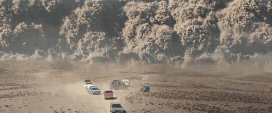 而此时,沙尘暴来袭,滚滚黄沙眼看要吞没一切…
