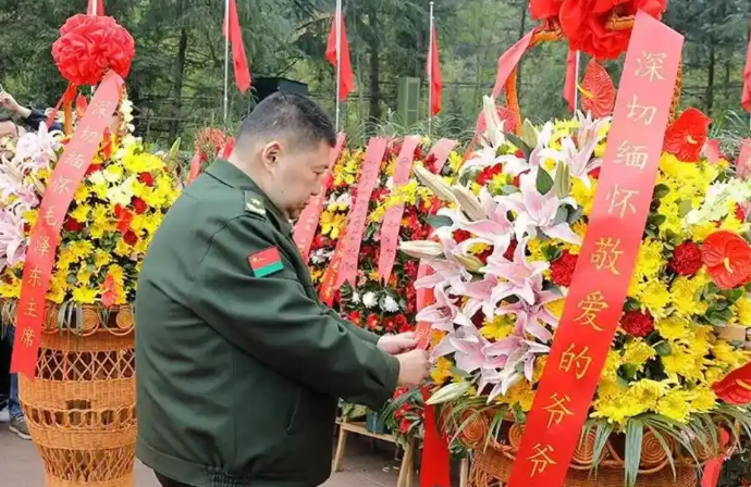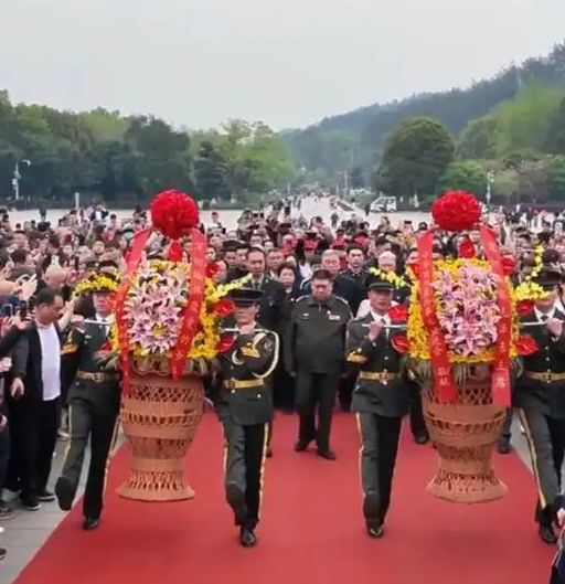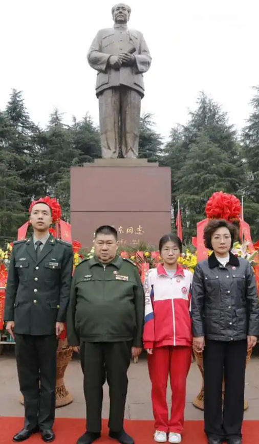 4 月 5 日上午,毛新宇少将带着妻儿,迈着沉稳的步伐踏上花岗岩台阶,朝着祖父的铜像缓缓前行,他们是要敬献花篮的。《献花曲》的旋律在松柏间缭绕,一家四口神色庄重地三次深深鞠躬。被雨水打湿的青石板像镜子似的,映出他们跨越时空的深深敬意。