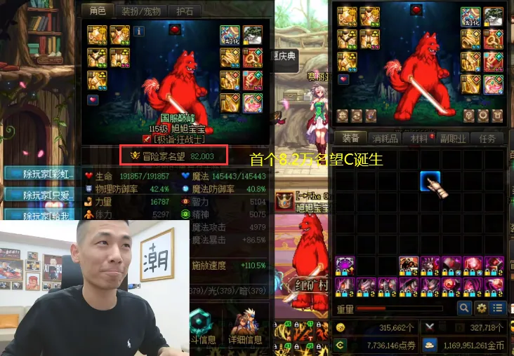 (1)名望大提升。截止目前为止,第一个8.2万名望C诞生了!