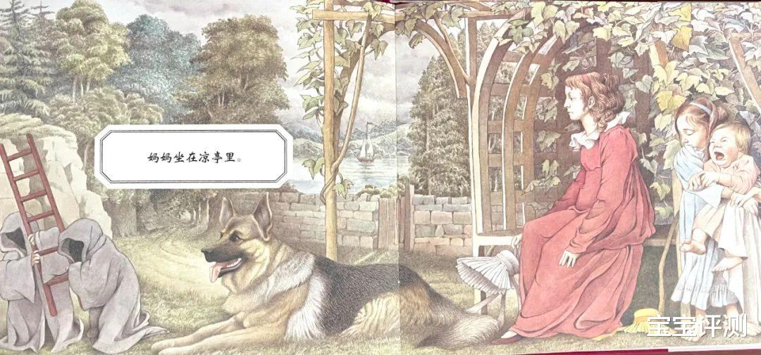 表面上看,这是一个说姐姐勇敢聪明,又很爱妹妹,有勇气有担当的故事。不过,我们说过,读绘本,一定是图文一起读,有时候,甚至是图高于文的。