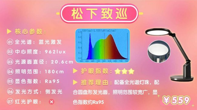 推荐理由:台灯采用面光源与环光源结合设计,有效扩大照明区域。