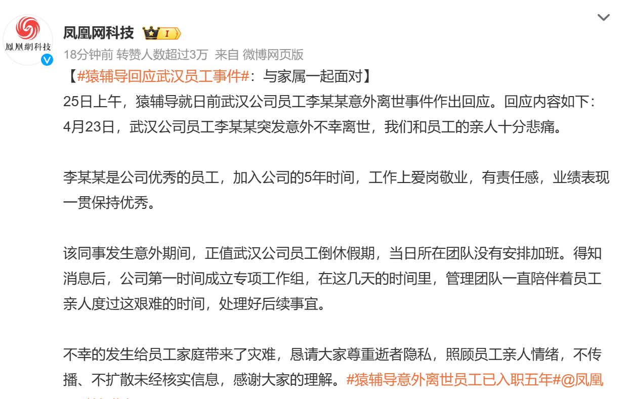 只有发生意外那一天是调休,其他364天都在加班吗?作为一个武汉打工人,发生这样的事,和有这样的公司声明是一点都不意外。