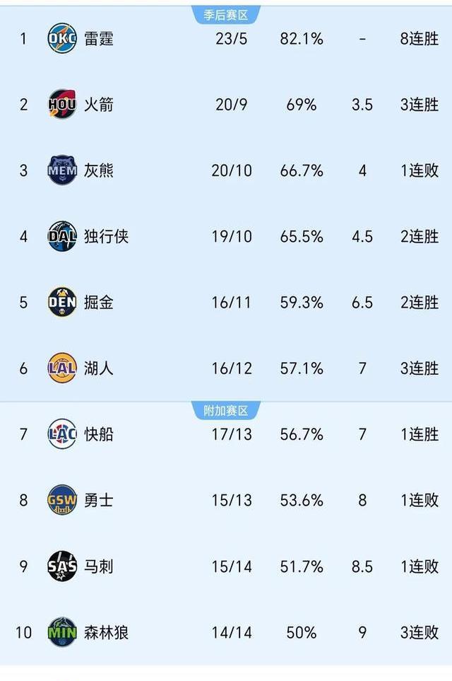 今儿个几场比赛打完,整个西部排名又得重新洗牌了。