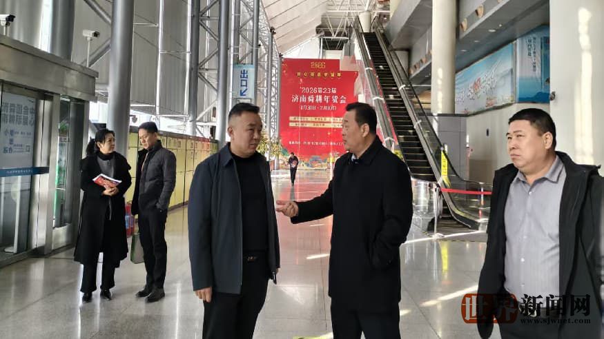 中梭通在线山东济南讯:2026年1月13日上午,济南市糖酒副食品流通行业协会会长魏庆,理事朱永峰,孙玉奎。常务秘书长(主持秘书处工作)姜波一行到济南舜耕国际会展中心交流走访,与会展中心董事长范伟,招商部马钰总经理进行深入坦诚的交流。