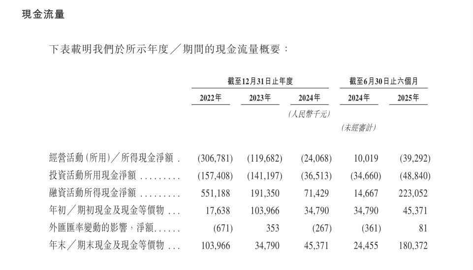 与经营性现金流持续“失血”形成鲜明对比的是,招股书显示,2025年上半年公司融资活动现金流净额为2.23亿元,同比增加2.08亿元,主要因本期取得股东注资款项所致。招股书提示财务可行性风险,公司持续产生经营亏损及经营活动现金流出,未来需额外资金支持运营及业务扩张,若无法按可接受条款获得充足资金,可能对业务发展、财务状况及经营业绩造成重大不利影响。
