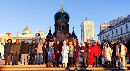 1月10日下午,诗人们赴哈尔滨参观远东最大东正教拜占庭式建筑索菲亚教堂,欣赏绿色洋葱头穹顶与白雪的绝美搭配,在百年建筑与鸽群飞舞中捕捉诗意;漫步亚洲第一长步行街中央大街,感受欧式建筑风情,品尝马迭尔冰棍、秋林红肠等特色美食,体验“零下20℃吃冰棍”的冰城特色。大家还浏览了松花江、防洪纪念塔。