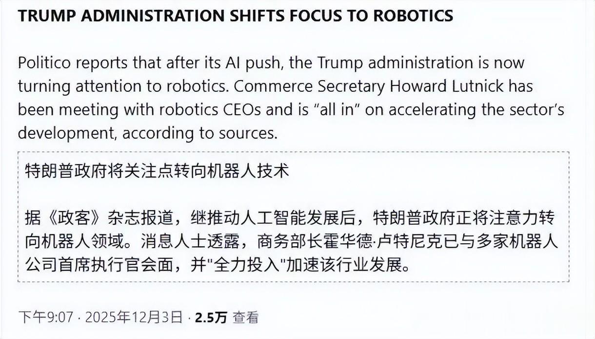 川普又大动作了看上机器人了!特斯拉大涨2%,机器人后面看看能加入轮动不