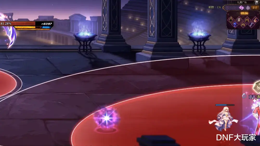 二阶段开场机制,Boss跑到地图的一边,召唤“紫色圈”,圈外爆炸攻击,我们按Tab键瞬移,站进圈内躲避。地面出现红色攻击路线,Boss会沿着路线前进攻击,我们站在路线上,面对Boss不停地平打,即可破招,完成机制。