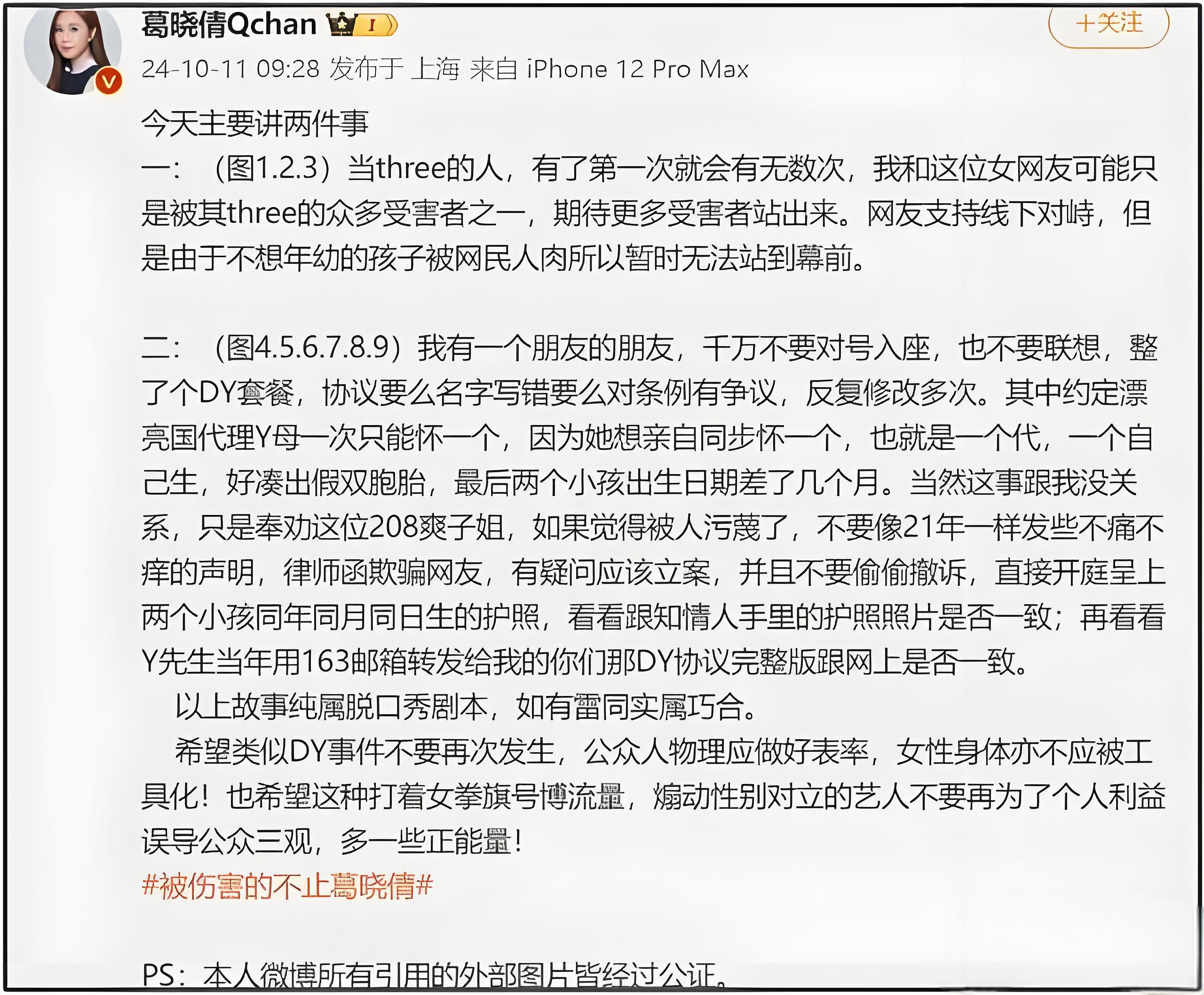 葛晓倩,这位曾在娱乐圈掀起阵阵波澜的人物,再次以爆料者的姿态现身于公众视野。她宣称自己握有张雨绮代孕的铁证,并呼吁更多的受害者勇敢站出来指证。与此同时,她还分享了与一位女网友的聊天记录,内容直指向张雨绮插足他人感情,甚至采用代孕手段。
