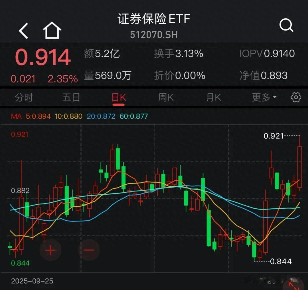 非银金融板块今天表现非常强,证券保险ETF(512070)盘中大涨3个多点,成为今天涨幅榜最前排的ETF之一,技术面上看也站上了各条均线,短线走势偏强。