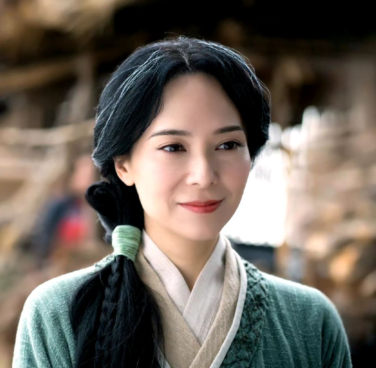 24年前的她还是英气中透着几分儒雅,有种女生男相的味道。但24年过后,一身绿色衣裳,扎着温婉的低盘发,有种岁月沉淀下来的从容美感。