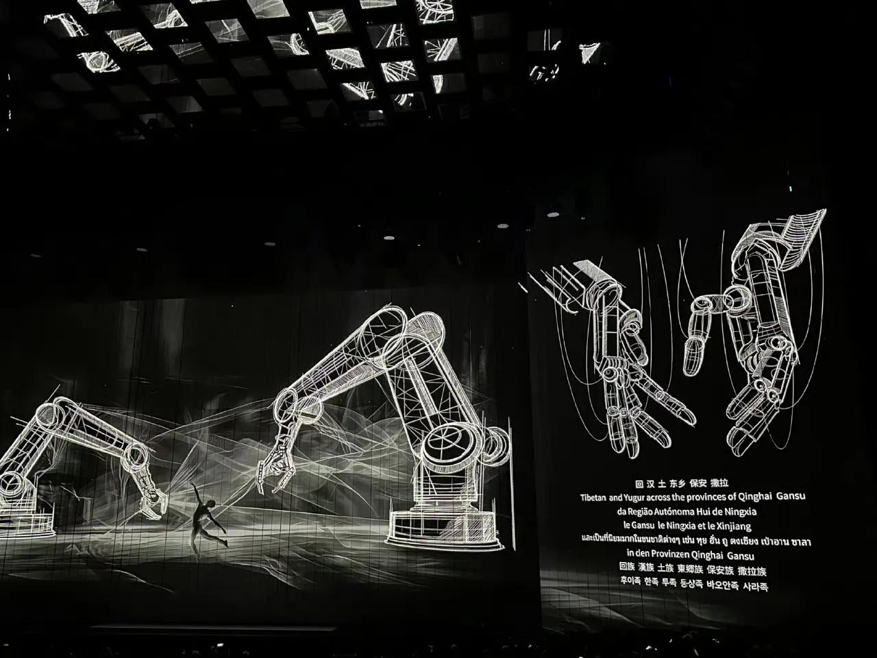 表演效果更是震撼,这场演出是利用前沿科技手段,对非遗文化进行艺术重构,濒临失传的呼麦、苗歌、海腔等非遗表演堪称一绝,遥控编程机械臂精准舞动,AI影像制作奇幻逼真,仿生飞行器表演惊艳全场。