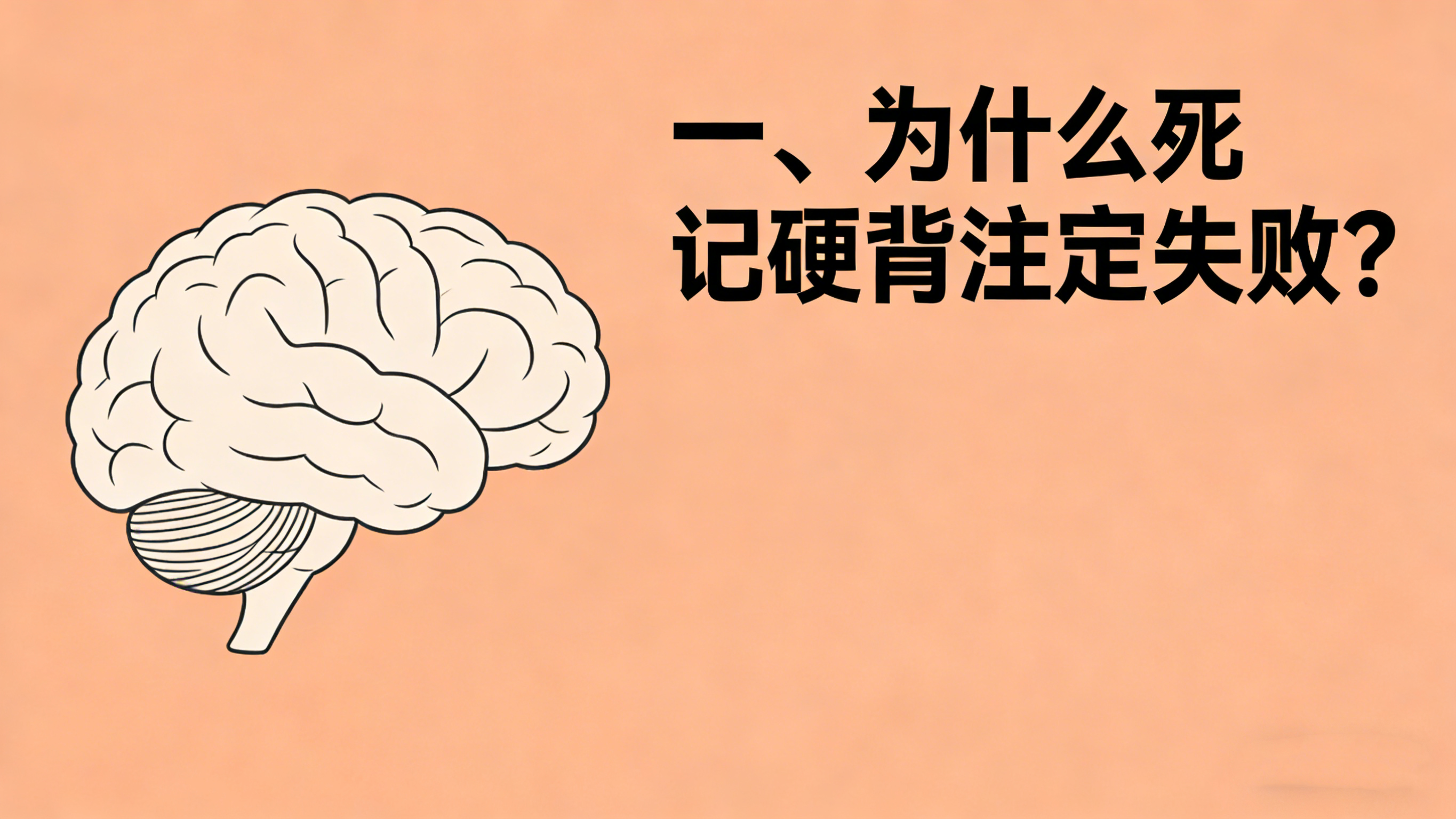 凌晨2点的台灯下,你盯着满页的知识点,嘴里默念“背完这遍就睡”,结果第二天醒来,脑子里只剩一片空白;职场汇报前,你熬了3个晚上背下来的流程,一开口就卡壳,只能尴尬地翻笔记……