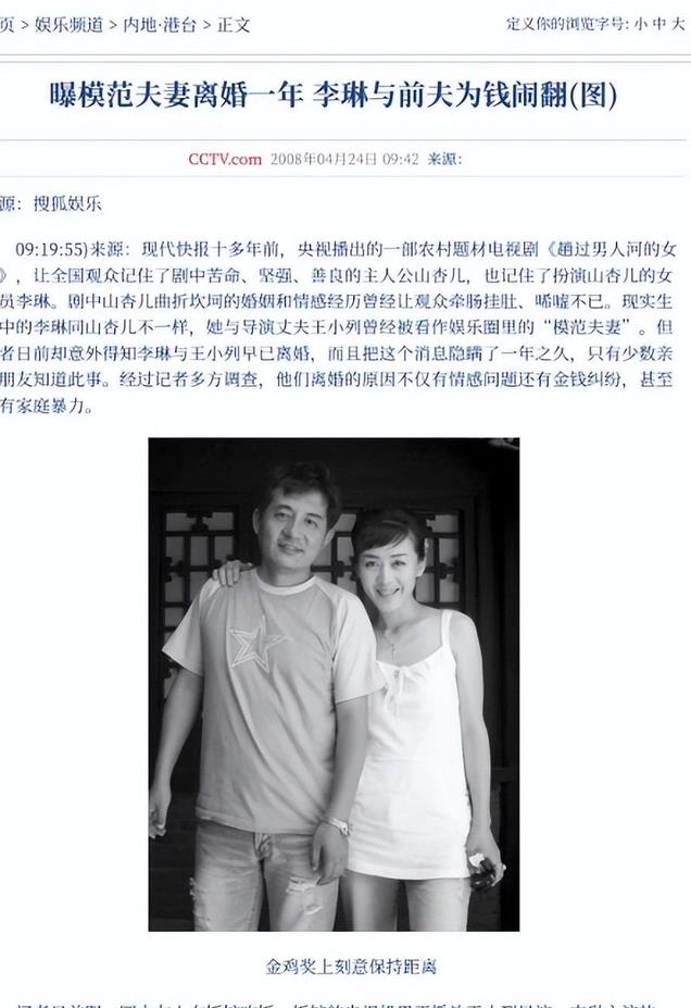 搜狐娱乐2008.4.24——曝模范夫妻离婚一年李琳与前夫为钱闹翻