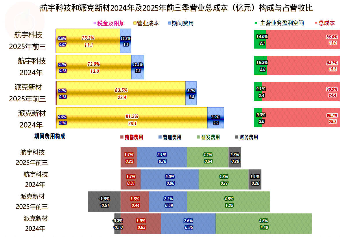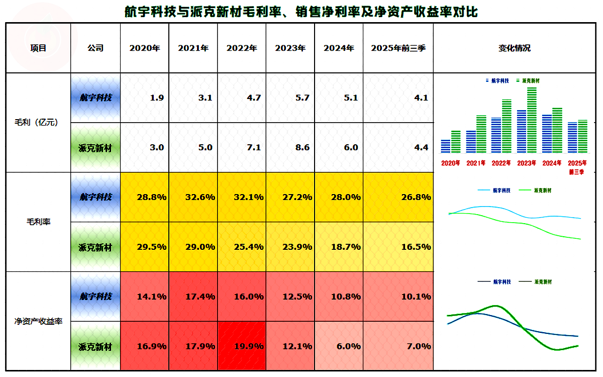 在2020年,派克新材的毛利率略高于航宇科技,之后就被航宇科技反超,2025年前三季度的差异已经相当大了。是不是产品结构差异导致的毛利率分化呢?