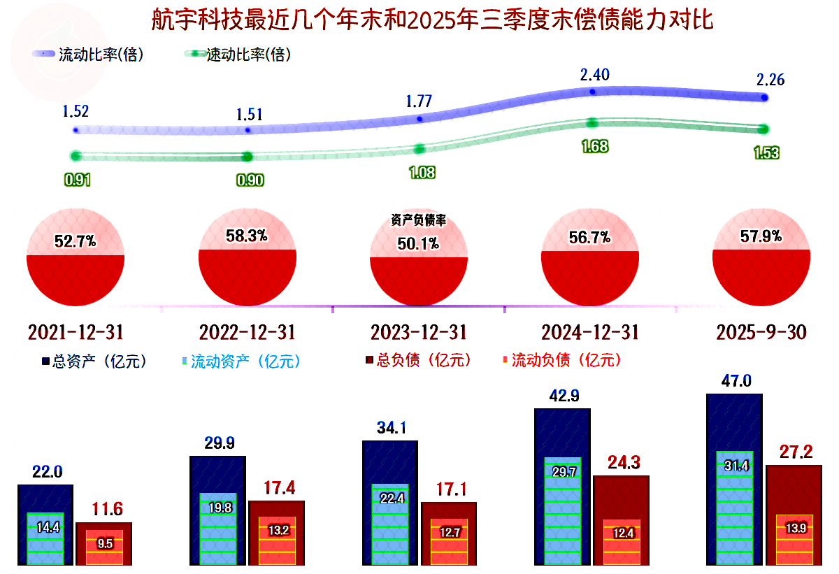 航宇科技的资产负债率并不算太高,短期偿债能力也很强,也就是说,仍然还有较大的可投资的资源或潜力。只是看他们怎么来取舍了,我个人觉得,可能大家都会缓一缓节奏了,不然的话,不断膨胀的资产负债表,和不短刷新纪录的产能等因素,与市场脱节严重后,盈利能力就会受到较大的拖累。