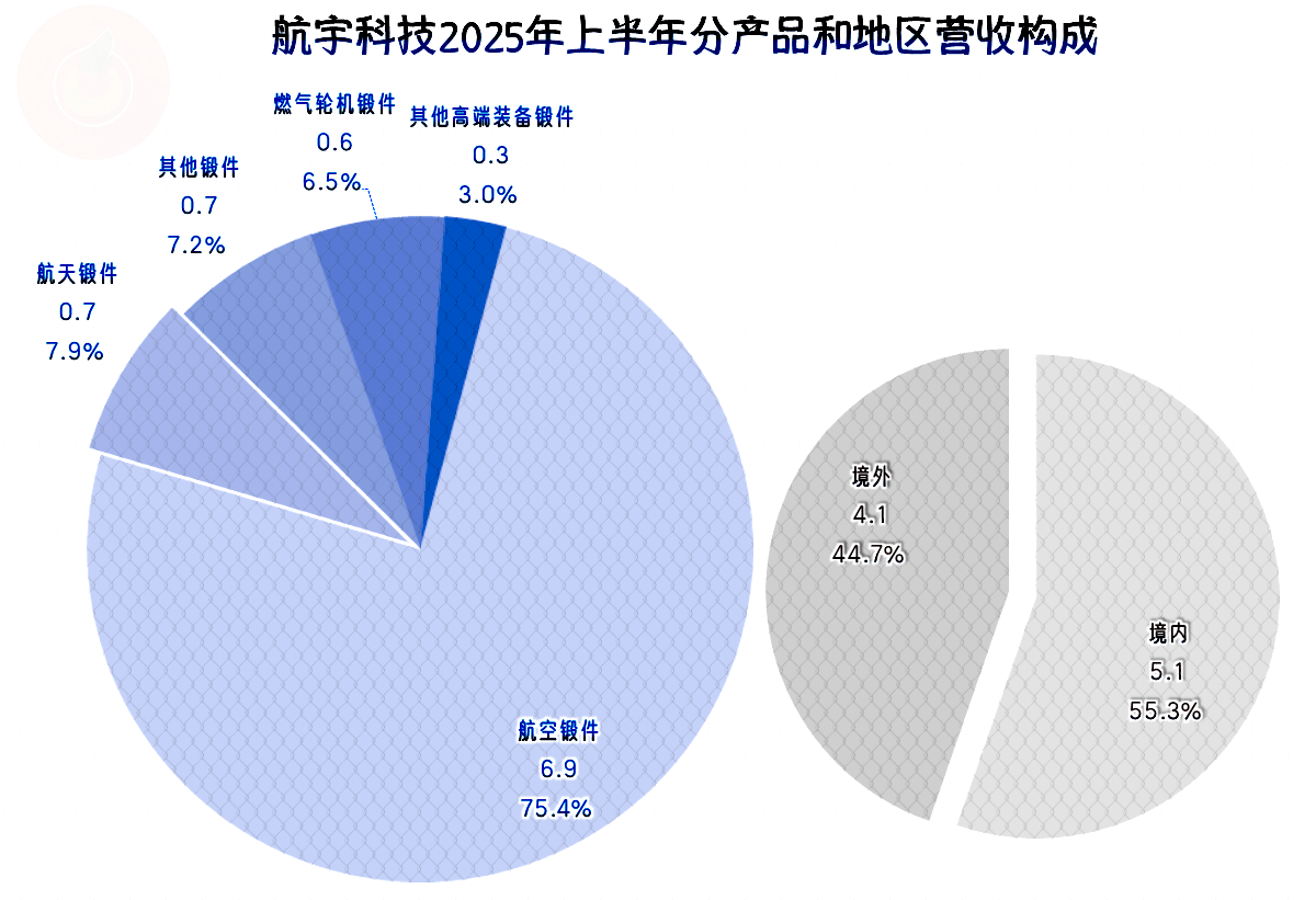 “航空航天锻件”是派克新材的第二大业务,派克新材最大的业务是“电力锻件”,但派克新材的“航空航天锻件”2025年上半年的规模达到了4.4亿元,比航宇科技的相关业务规模差得并不多。但派克新材的境外市场占比不到两成,国际化程度确实不如航宇科技。