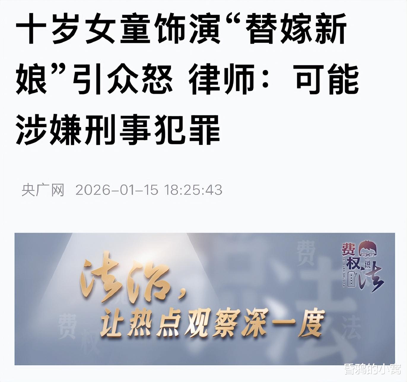 近日,短剧《逼锦鲤替嫁活阎王,相府气运全断了》因选用11岁童星刘星辰饰演“7岁替嫁新娘”,演绎早婚、生子等成人化剧情引发全网震怒。