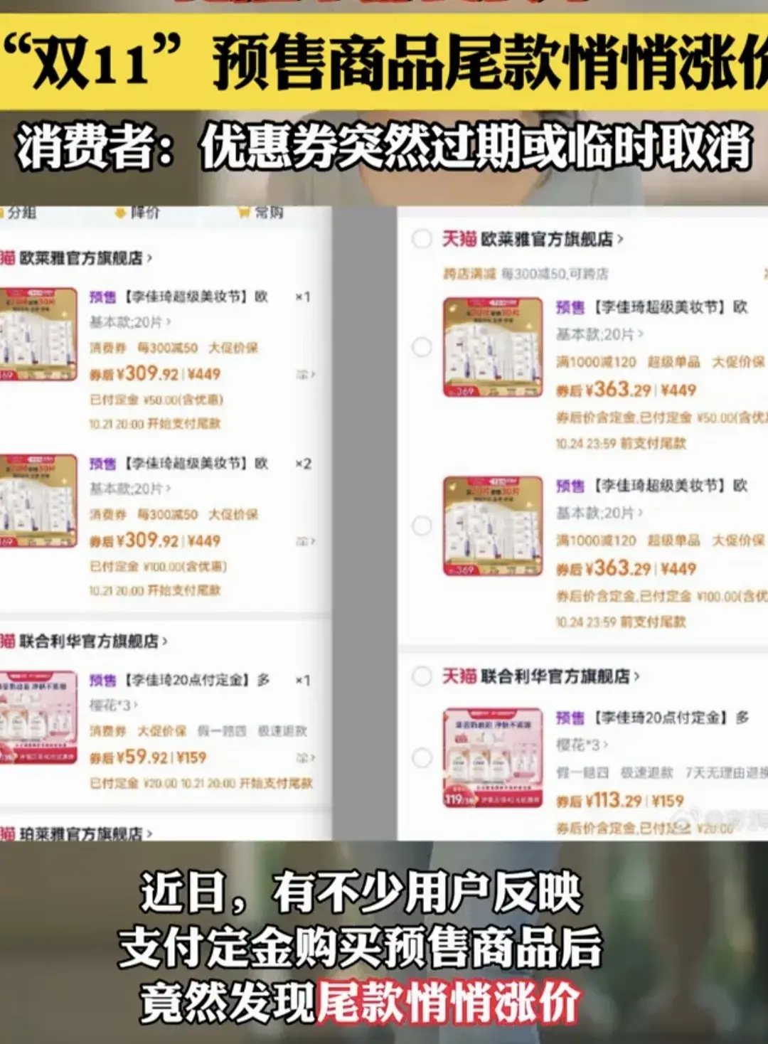 当消费者满心欢喜地在预售阶段支付了定金,以为已经锁定了一个划算的价格,就等着支付尾款完成购物流程时,却遭遇了这样的“晴天霹雳”。