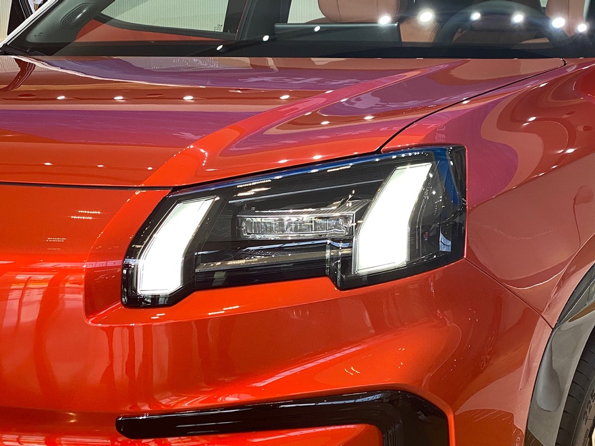 比如赛博龙爪的前大灯组、隆起的前后翼子板、大尺寸的八幅式轮毂以及类似“方盒子”的车身造型等,进一步勾勒出“霸王龙”体态的力量感。不但平衡性把握得很到位,而且整体比例堪称完美。