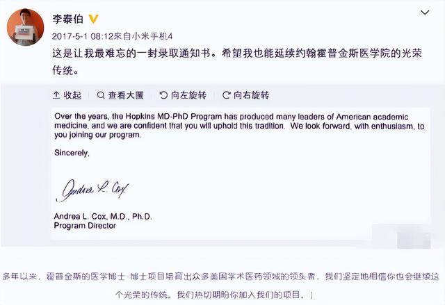 一旦接受,李泰伯就可以提前开启大学生活,避开高考的激烈竞争,但他却拒绝了。