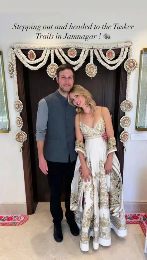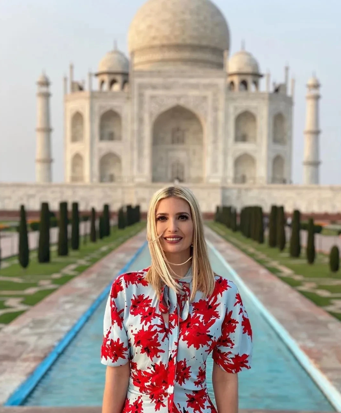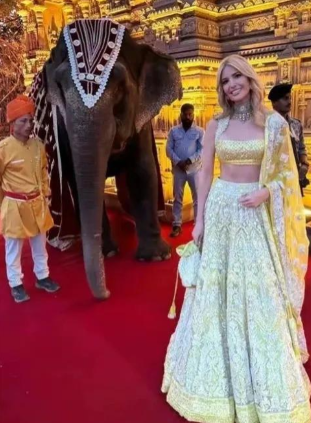 当时伊万卡在印度还入乡随俗,穿上印度纱丽裙美得惊艳,还有她老公也换上了印度传统男装,夫妻俩依偎在一起十分恩爱,还有伊万卡女儿也去了,母女俩还穿亲子装纱丽裙宛如姐妹。