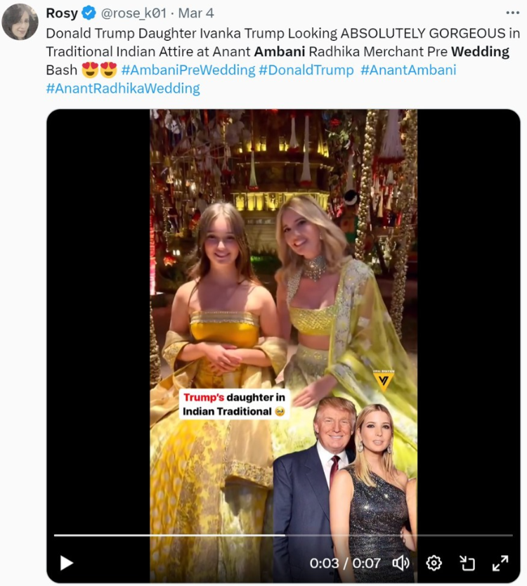 值得一提的是穆克什夫妇为小儿子举办婚礼时也邀请了伊万卡;当时伊万卡应该是代表父亲去的,不然特朗普举行总统就职典礼也不会邀请印度首富,这应该是礼尚往来吧!
