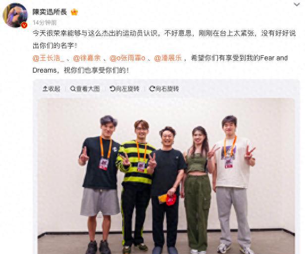 陈奕迅没有让运动员们现场演唱,而是说了一句特你们不用唱,我唱给你们听贴的做法让在场所有人都感动。