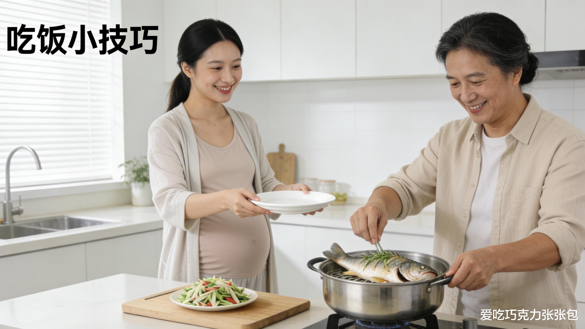 首先,吃饭时尽量“干稀分离”,比如吃主食和菜时先不喝汤,饭后半小时再少量喝水或喝汤,避免胃部过度膨胀引发呕吐;其次,吃饭速度要慢,细嚼慢咽,给肠胃足够的消化时间,狼吞虎咽容易让胃部负担过重;另外,尽量避免自己做饭时接触油烟,油烟是很多孕妈的“孕吐触发器”,可以让家人帮忙做饭,或者选择凉拌、清蒸、水煮等无油烟的烹饪方式。