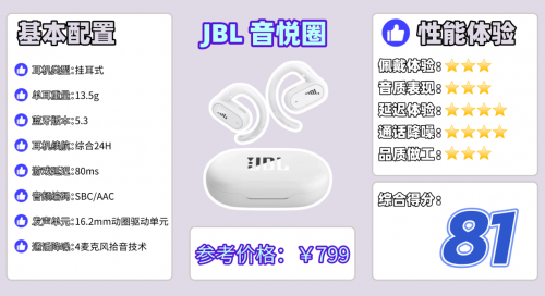 音质延续JBL低频风格,10mm动圈单元低频量感充沛,鼓点冲击力强,但中高频被低频掩盖,人声略显浑浊,听摇滚或电子乐时层次感不足。蓝牙5.2连接稳定性中等,在超市等WiFi信号密集区会出现短暂断连,游戏模式延迟约120ms,玩《王者荣耀》技能音效延迟感知明显。通话采用单麦物理降噪,风噪抑制较差,骑行时需用手捂住耳机才能让对方听清。