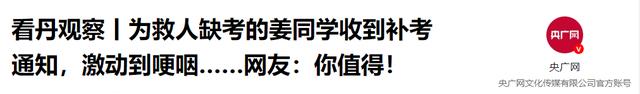 央广网-2025-05-15 ——《看丹观察丨为救人缺考的姜同学收到补考通知,激动到哽咽……网友:你值得!》