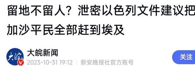 大皖新闻:留地不留人?泄密以色列文件建议把加沙平民全部赶到埃及2023-10-31 19:12